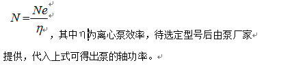 根据以上数据从泵厂J样本中选取合适型号ISGB防爆管道离心泵, 参照泵的性能曲线,使泵的操作参数位于高效区内,查出泵的效率从而计算轴功率。